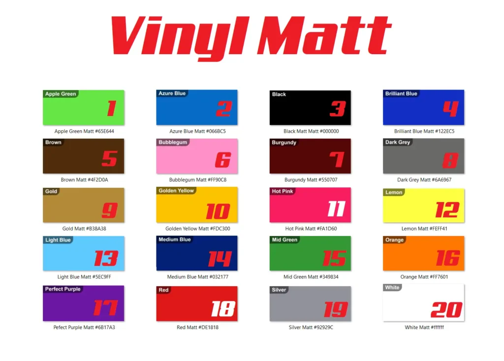 Vinyl Colour Chart For Wall Stickers